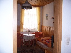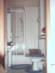Küche mit folgender Ausstattung: Bad mit folgender Ausstattung: Vorraum: Koch- und Abwaschgelegenheit Dusche, WC und Waschbecken mit Reinigungsgeräten Kühlschrank, Kaffemaschine, Toaster (gemeinsame Nutzung Radio, Minibackofen, Sitzgruppe mit Ferienwohnung 3)