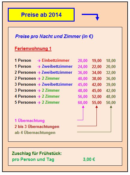 Nachfolgend sind die Preise für diese Wohnung ersichtlich: